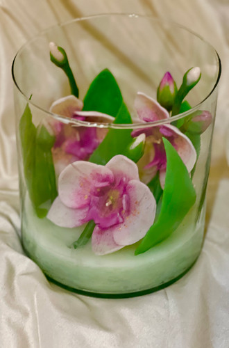 شمعهای دستساز گل در ظرف شیشهای
